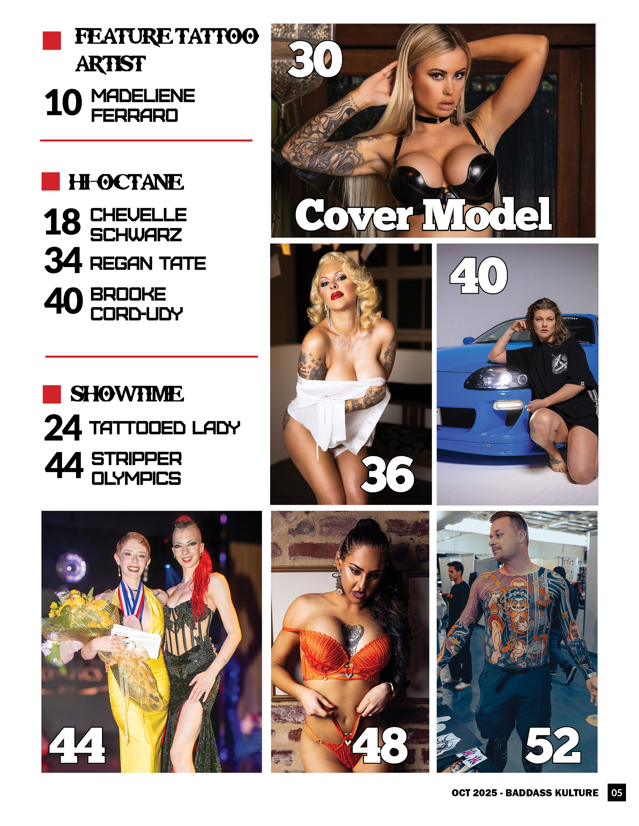 From Hi-Octane (Bikes & Cars) to BTS from Photo Shoots to Tattoo Artists at Expos to Baddass Delights Catalogue Models
